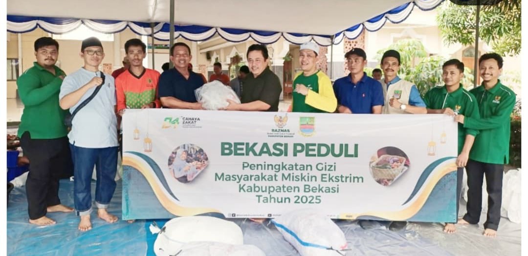Kabupaten Bekasi -Pemerintah Kabupaten Bekasi melalui Dinas Sosial Kabupaten Bekasi dan Badan Amil Zakat Nasional (Baznas) Kabupaten Bekasi Berkolaborasi dalam Pemenuhan Gizi bagi Miskin Esktrim dalam moment Hari Raya Idul Adha 1446 H, dengan menyalurkan daging qurban kepada 1.105 Masyarakat Miskin Ekstrim di 23 Kecamatan se Kabupaten Bekasi, Sabtu (07/06/25)