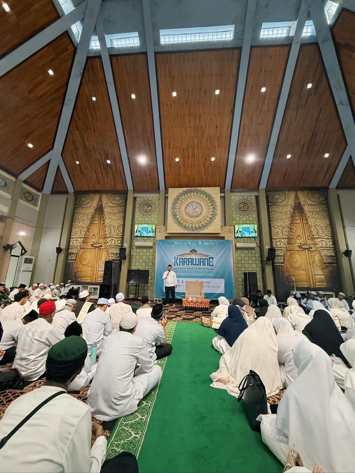 Karawang -Dalam acara Karawang Bershalawat dan Berdzikir di Masjid Al-Jihad Karawang, Sabtu (11/10/2025) Sanema Tour Karawang memberikan umroh gratis pada jemaah yang hadir.